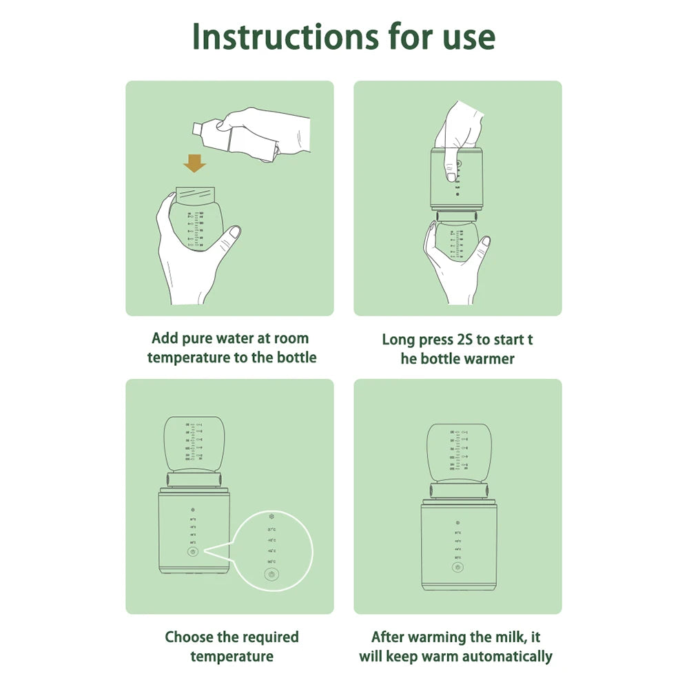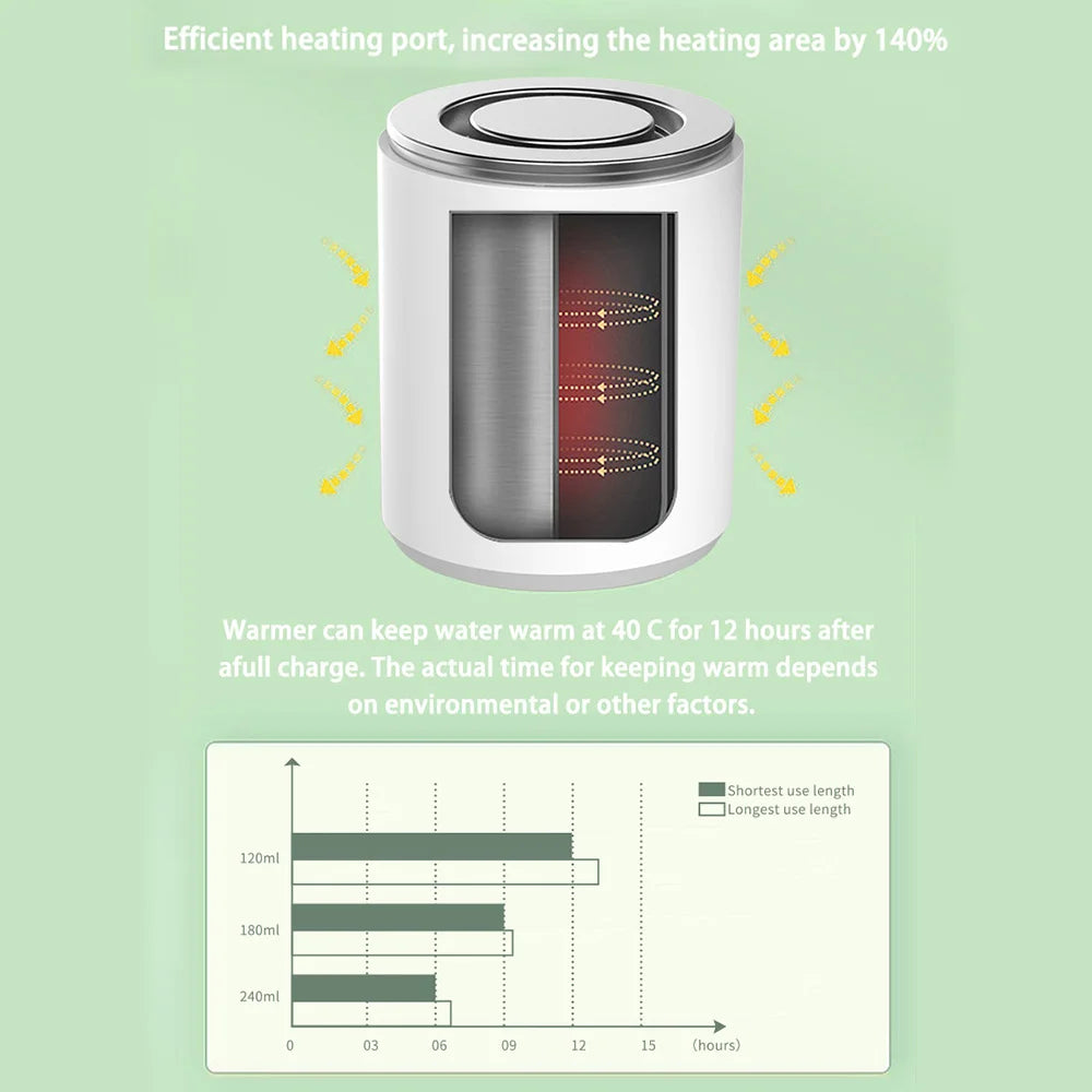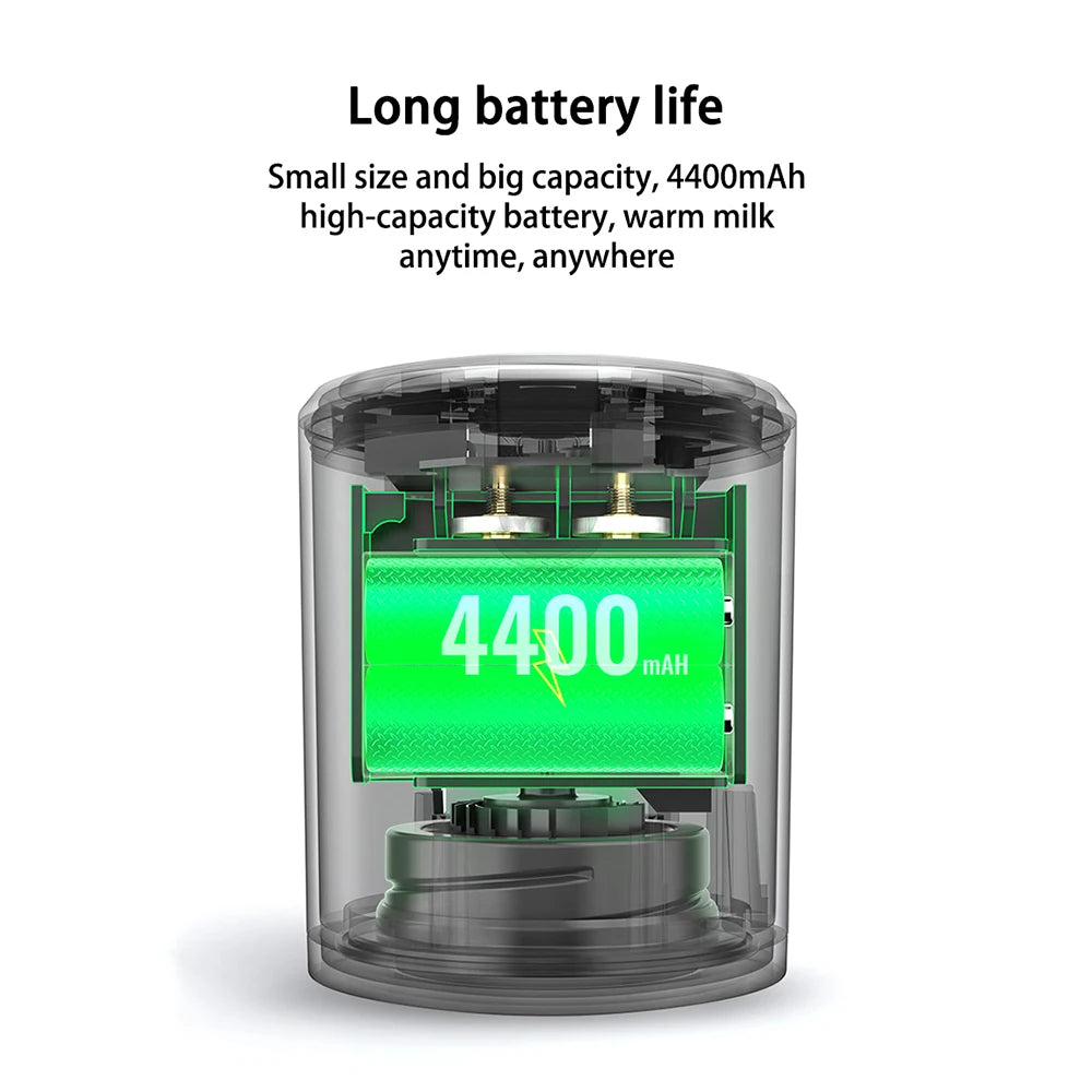 【Long Battery Life】The portable bottle warmer has built-in 4400mAh large capacity battery that supports long working time and can be charged by the provided USB cable. You can warm milk anytime anywhere.